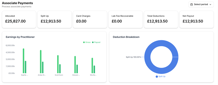 Here's what the Associate Payments dashboard looks like in action: